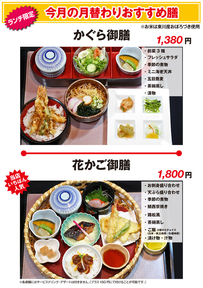 かぐら御膳は 牛すき焼き丼 と きつね蕎麦 です。