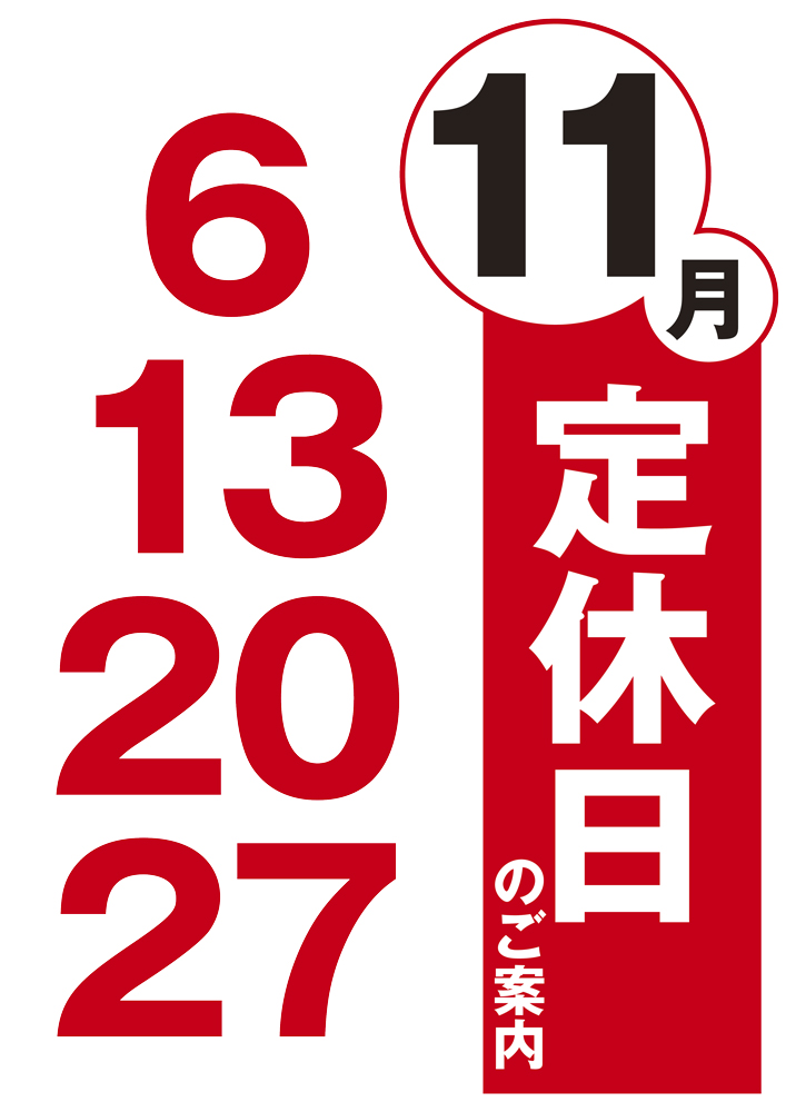 11月のお休みは毎週木曜日の4回です。 よろしく、お願いいたします。