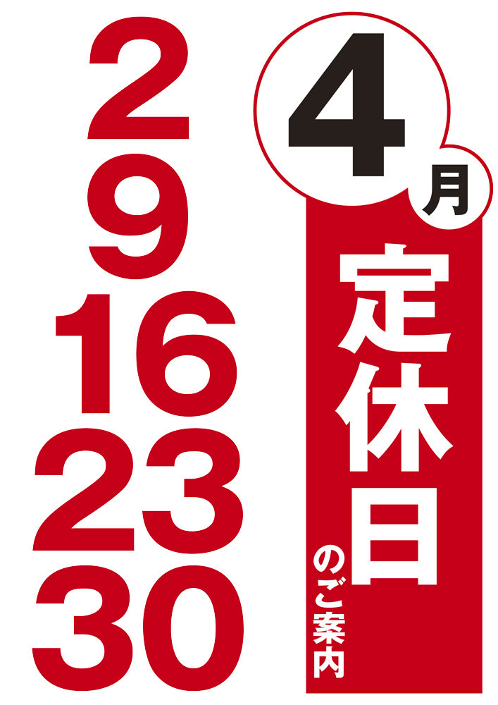 4月は2.9.16.23.30日の5回です。 よろしく、お願いいたします。