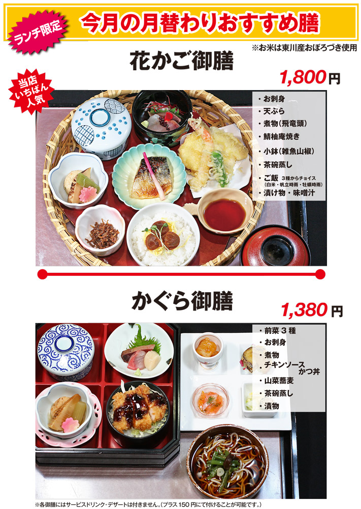 3月の 花かご御膳 と かぐら御膳 です。